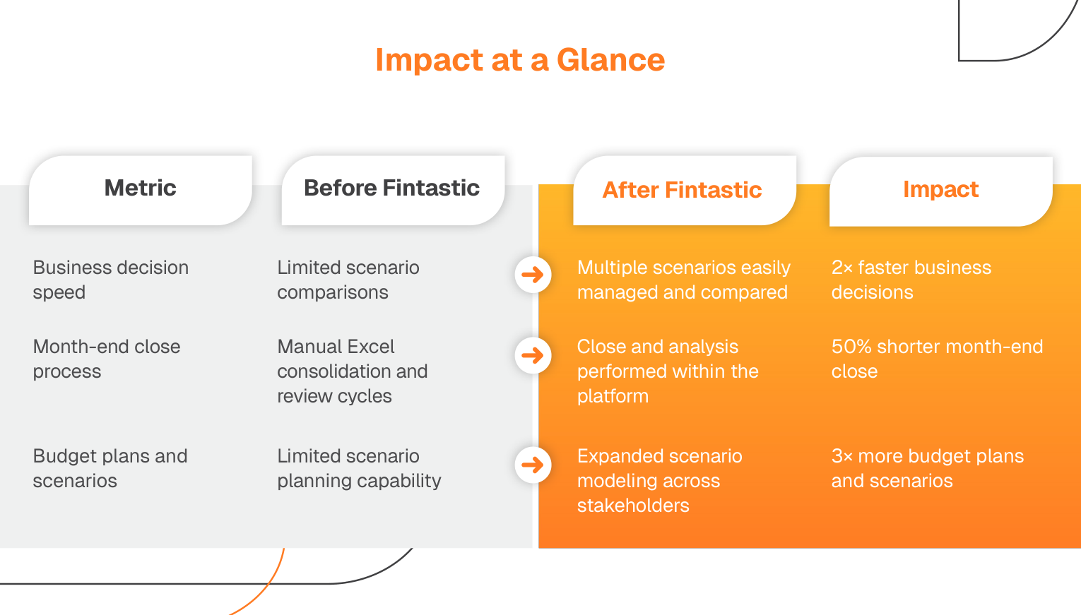 This is the part that matters most for the business. Faster scenario analysis doesn’t just save the finance team time. It gives leadership better information sooner, which changes the quality of decisions across the company.