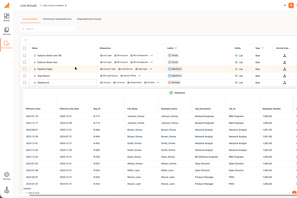 Integrate planning across ERP, CRM, HRIS, and data environments.